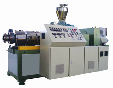 主要用于生產農用給排水、建筑給排水、線纜敷設等方面的各種管徑、厚壁的塑料PVC管材,該機組由錐形雙螺桿擠出機、真空定型臺、牽引機、切割機、翻料架等組成。螺桿擠出機及牽引機采用進口的交流變頻調速裝置,牽引機有二爪、三爪、五爪等牽引方式。可選用鋸片切割式或行星切割式,另帶計長儀及增厚裝置,機組性能可靠、生產效率高。