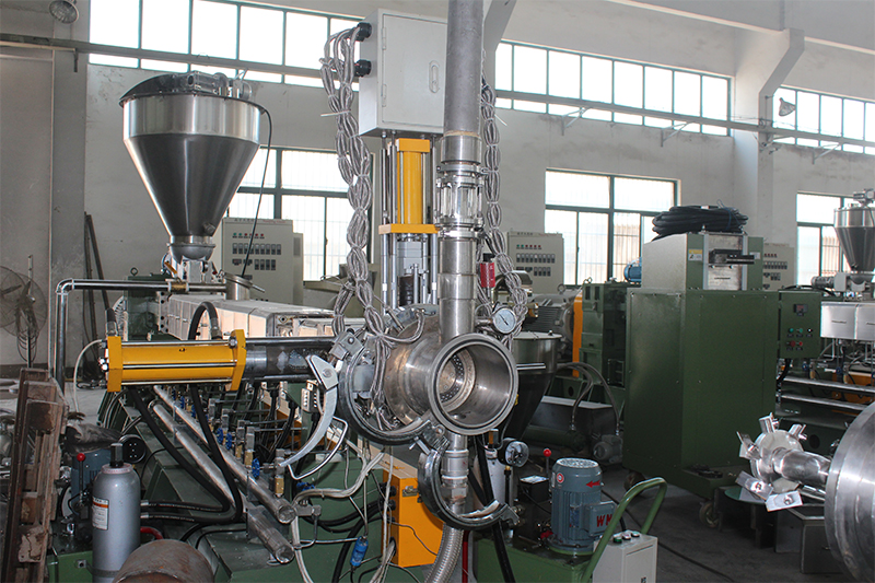 2.對于純TPU的造粒,從反應(yīng)釜下來后,可采用我公司研發(fā)的專門針對TPU反應(yīng)的雙螺桿預(yù)混喂料機和雙螺桿反應(yīng)型擠出機組。
