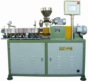 我公司研發(fā)的SHJ-20B是專門針對(duì)大專院,科研院所校設(shè)計(jì)的雙螺桿擠出機(jī),螺桿直徑20mm,設(shè)備長徑比L/D=40,生產(chǎn)能力2~10公斤,設(shè)備主機(jī)長度約二米,設(shè)備結(jié)構(gòu)緊湊,外形美觀,運(yùn)行可靠。